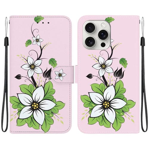 Funda para Teléfono iPhone 16 Pro Max Cuero Dibujo Coloreado Textura de Cristal (Lirio)