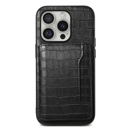 Estuche para Teléfono iPhone 16 Pro Max Diseño Bolsa para Tarjetas Textura Cocodrilo (Negro)