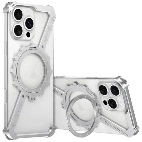 Funda para Teléfono Metal iPhone 16 Pro Max Magsafe Soporte 360 sin Marco (Plata Espacial)