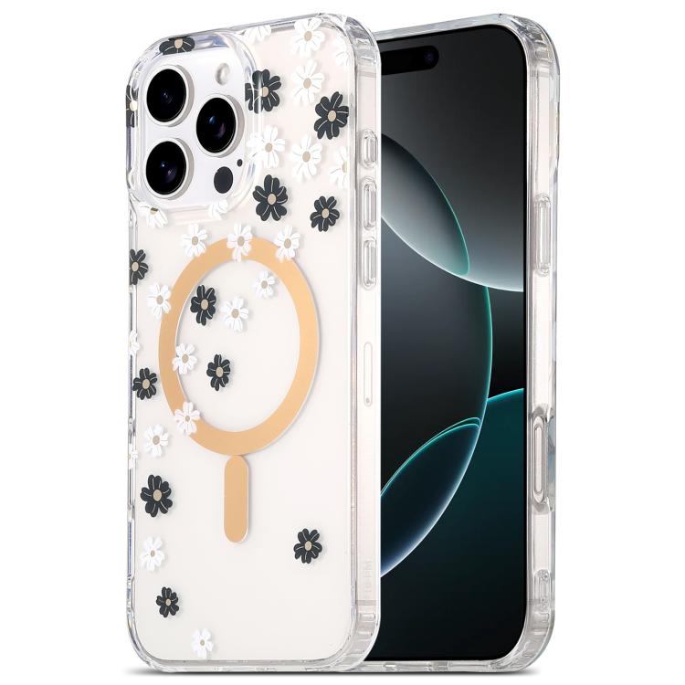Funda para Teléfono IMD Magsafe iPhone 16 Pro Max Laminado Doble Cara (Rosa y Margarita Blanca)