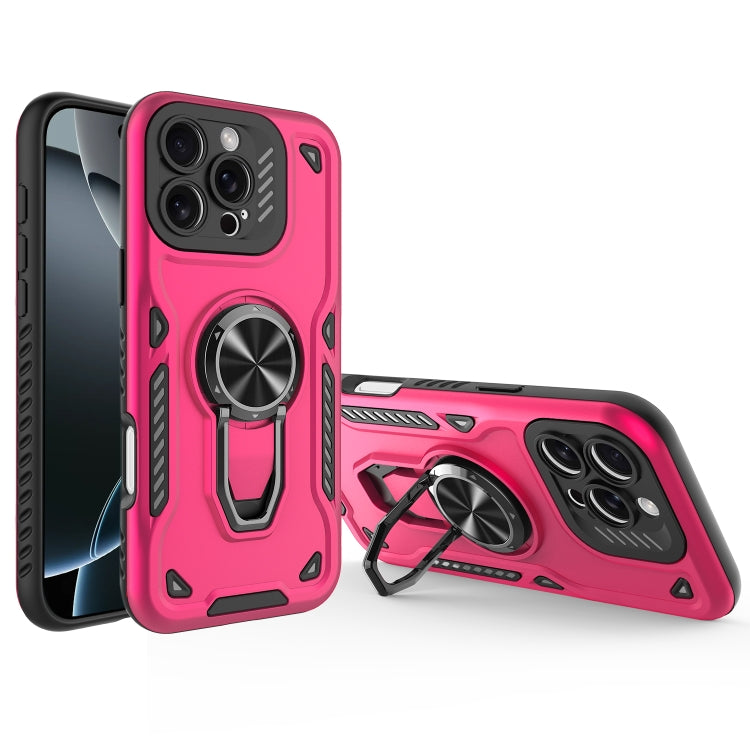 Funda para teléfono iPhone 16 Pro Max con soporte giratorio metal TPU + PC (Rosa Rojo)