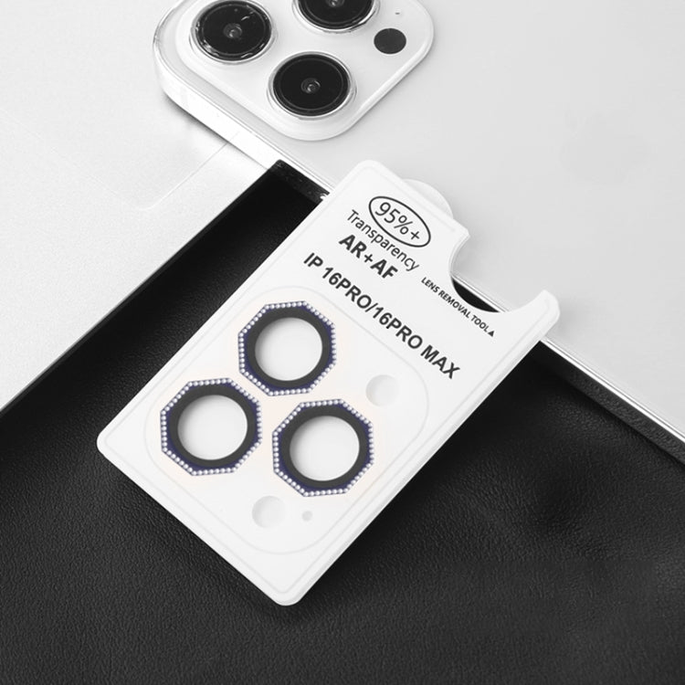 Película Protectora de Lente HD con Diamante para iPhone 16 Pro y 16 Pro Max (Azul Oscuro)