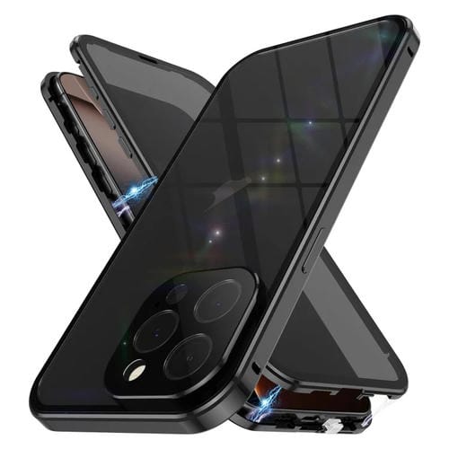 Funda de Vidrio Templado Doble Cara con Imán Antiespionaje para iPhone 16 Pro Max (Negro)