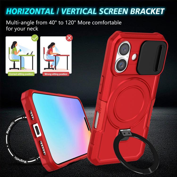 Funda híbrida TPU y PC con Soporte Magsafe y Protección deslizante para iPhone 16 (Rojo)