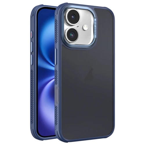 Estuche para Teléfono iPhone 16 Marco Lente Metal Esmerilado Sensación Piel Enfriamiento Azul