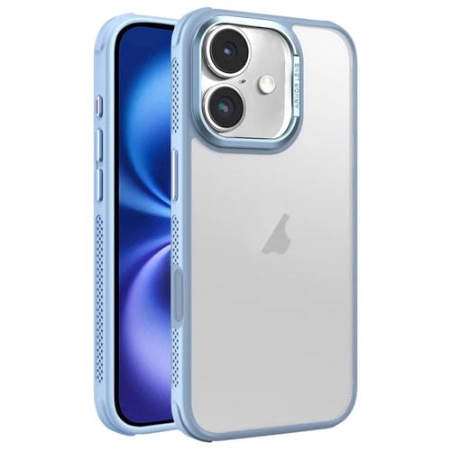 Estuche para Teléfono iPhone 16 Marco de Lente Metal Esmerilado Enfriamiento Lateral (Azul Cielo)