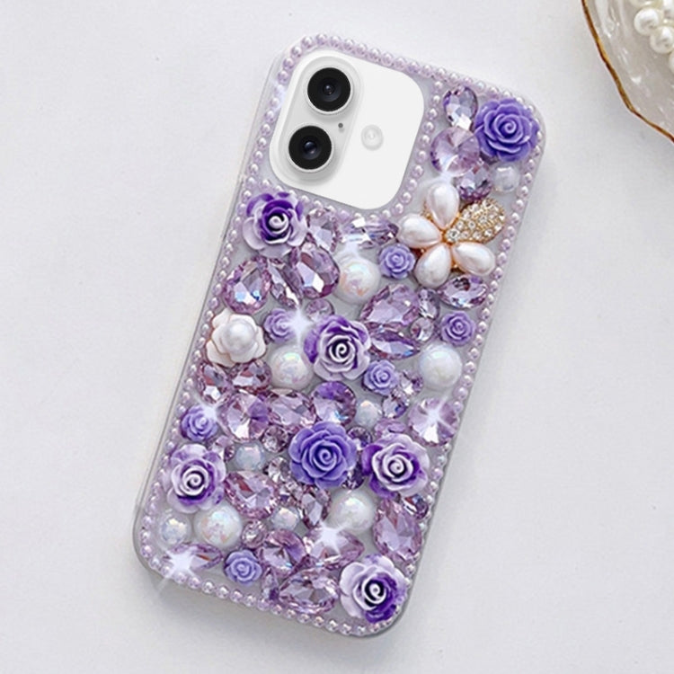 Funda para iPhone 16 Hecha a Mano con Piedras Preciosas y Diamantes de Imitación (Morado)