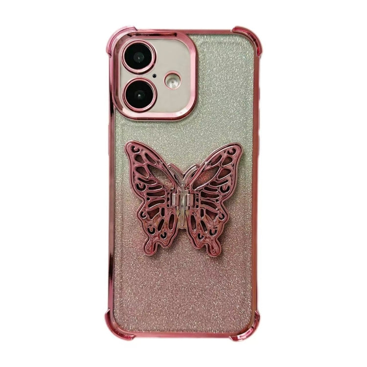 Funda para iPhone 16 TPU con Purpurina Galvanizada 3D y Diseño Mariposa (Rosa Degradado)