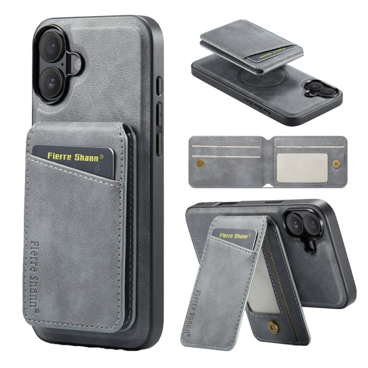 Funda para iPhone 16 Fierre Shann TaRJetero Magnético Piel de Vaca con Cera de Aceite (Gris)
