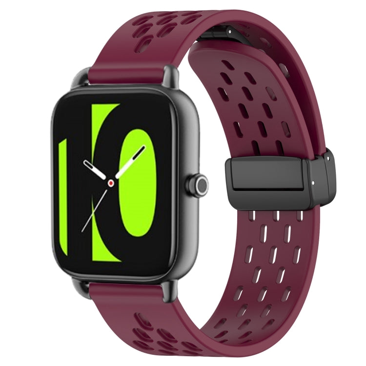 Correa de Reloj de Silicona para Xiaomi Haylou Rs4 Ls12 con Cierre Magnético Plegable 22mm (Rojo Vino)