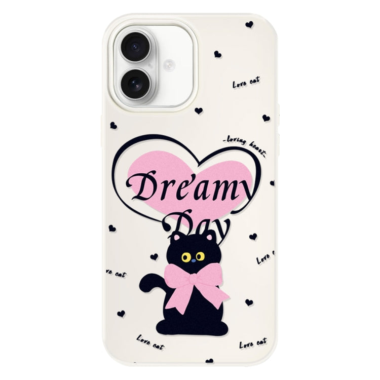 Funda híbrida TPU Policarbonato iPhone 16 Plus Tacto sedoso (Love Cat White)