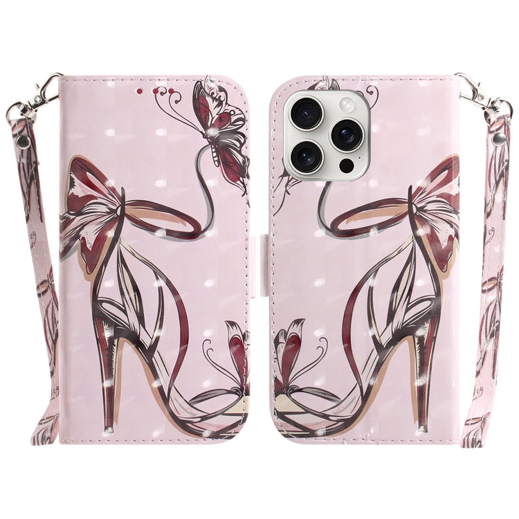Funda para teléfono iPhone 16 Pro Max y 16 Pro cuero con tapa horizontal 3D (Mariposa de Tacón Alto)