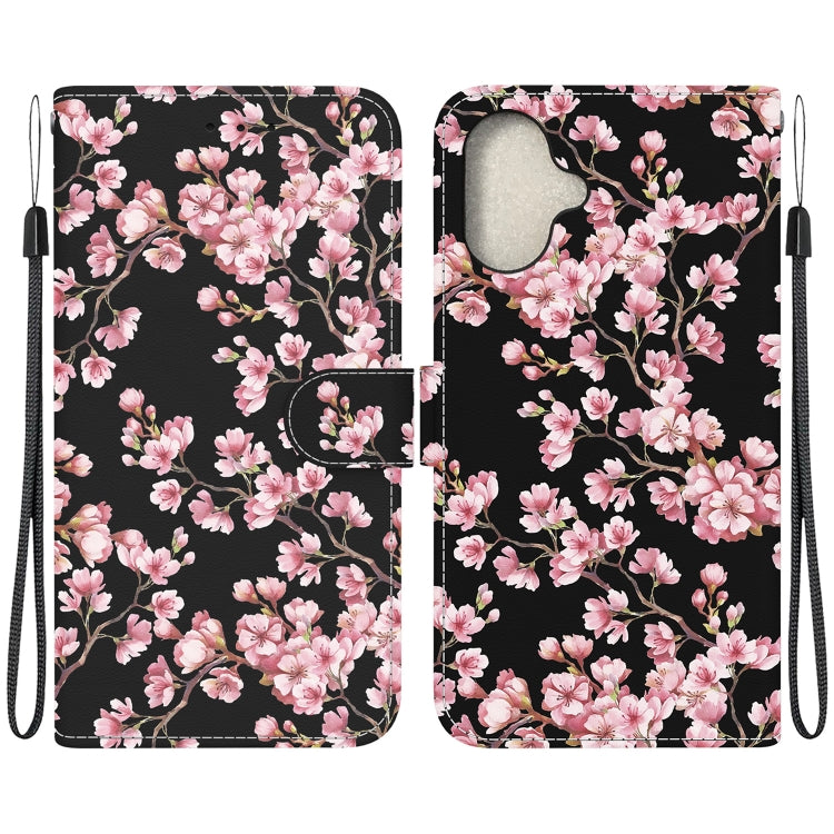 Funda para Teléfono iPhone 16 Plus Cuero Dibujo Coloreado Textura Cristal (Flor de Ciruelo)