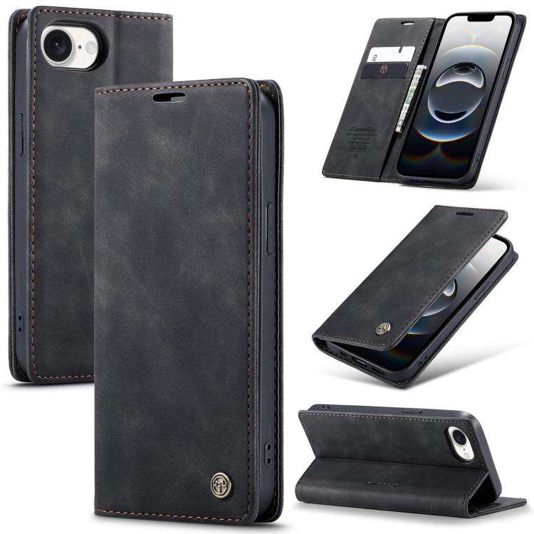 Funda de Cuero con Tapa Horizontal Multifuncional Caseme 013 para iPhone 16E (Negra)