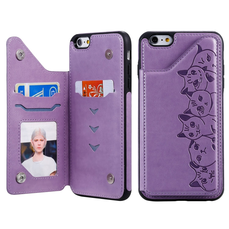 Funda para iPhone 6 Plus Seis Gatos con Soporte Ranuras para Tarjetas y Marco de Fotos (Púrpura)