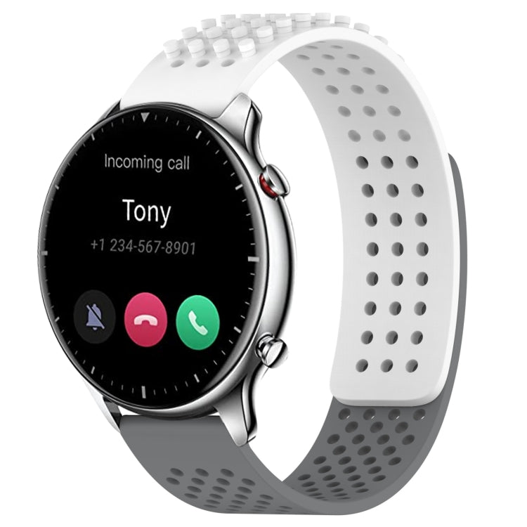 Correa de Silicona para Amazfit GTR 2 con Puntos 3D Transpirables y Orificios 22mm (Blanco + Gris)