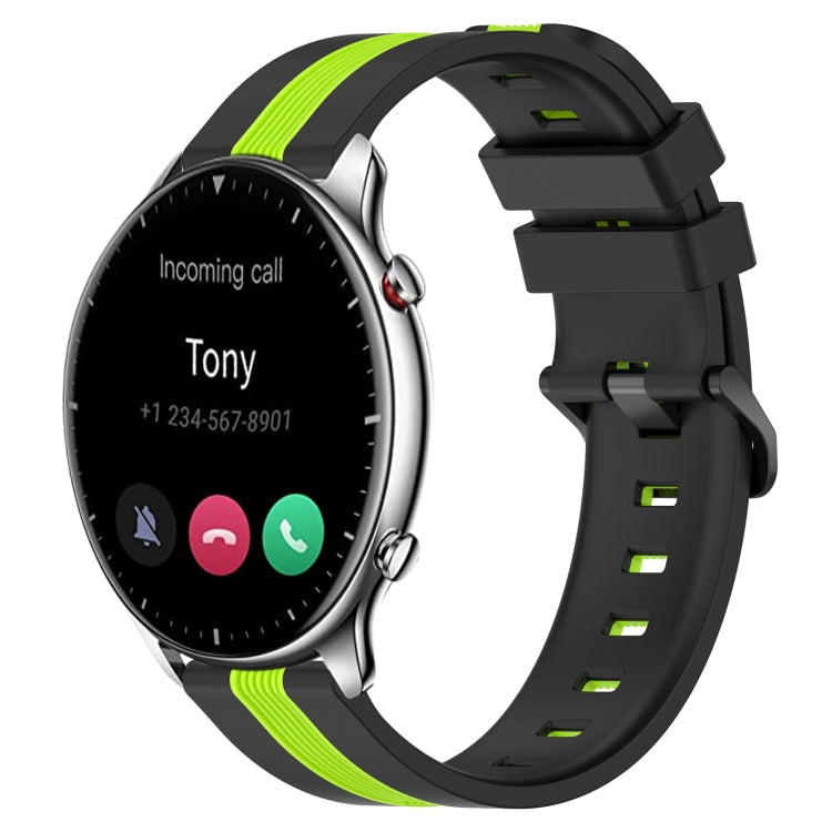 Correa de Reloj Silicona para Amazfit GTR 2 22mm Dos Colores Vertical (Negro + Verde Lima)