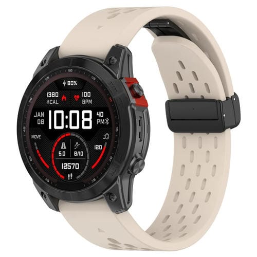 Correa de Reloj Silicona para Garmin Fenix 7X con Orificios y Hebilla Magnética (Starlight)