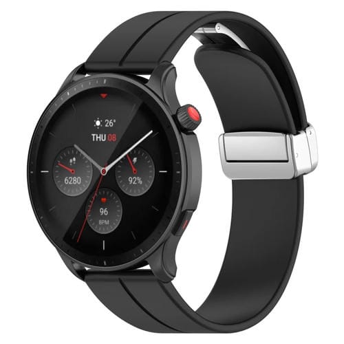Correa de Silicona para Amazfit GTR 4 con Cierre Plegable Magnético y Hebilla Plateada (Negro)