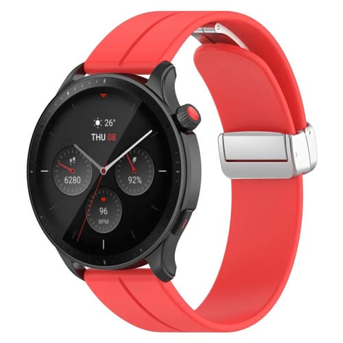 Correa de Silicona para Amazfit GTR 4 con Cierre Plegable Magnético y Hebilla Plateada (Rojo)