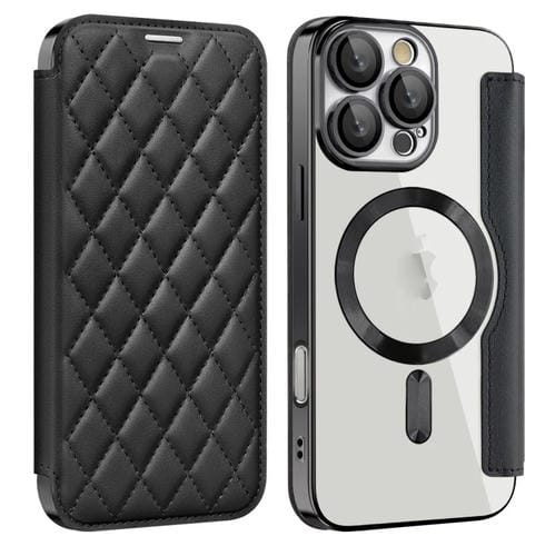 Funda de Cuero con Diseño de Rombos y Protección Rfid Magsafe para iPhone 16 Pro Max (Negro)