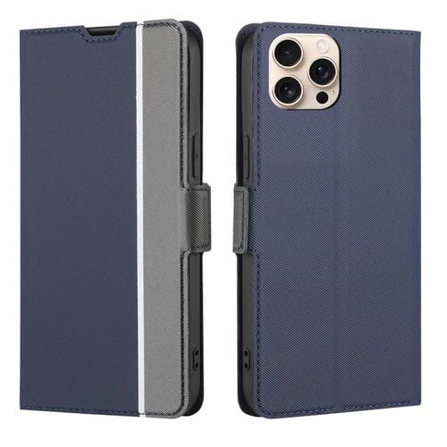 Funda de Cuero con Textura de Sarga y Botones Laterales para iPhone 16 Pro Max (Azul)