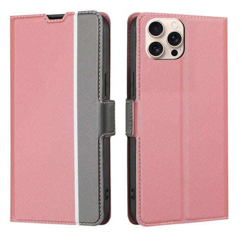 Funda de Cuero con Textura de Sarga y Botones Laterales para iPhone 16 Pro Max (Rosa)