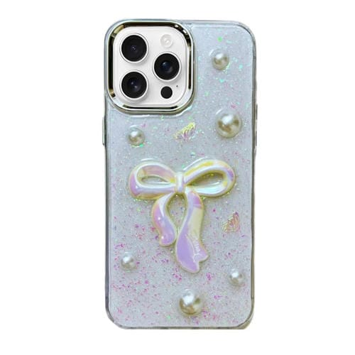 Funda TPU con Lazo 3D y Flores de Amor y Perlas para iPhone 16 Pro Max (Lazo de Perlas)