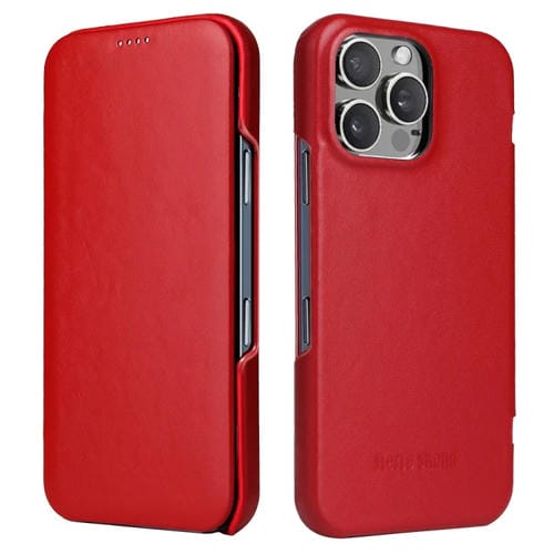 Funda de Cuero Fierre Shann para iPhone 16 Pro Max con Tapa Magnética (Rojo)