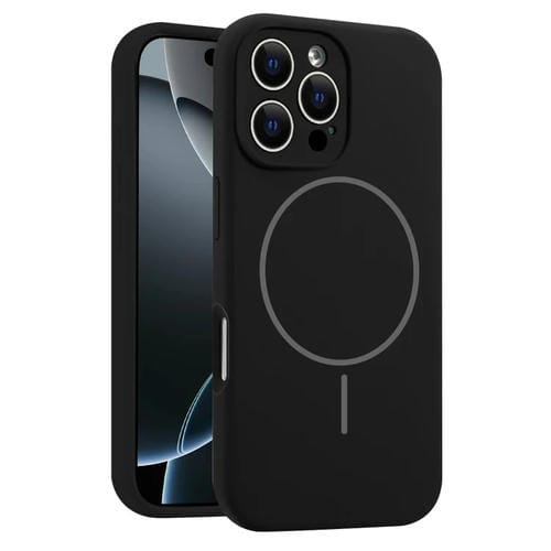 Funda de Silicona Líquida para iPhone 16 Pro Max Magsafe con Orificios Finos (Negra)