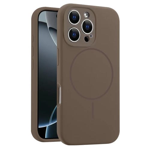 Funda Silicona Líquida iPhone 16 Pro Max Magsafe con Orificios Finos (Marrón)