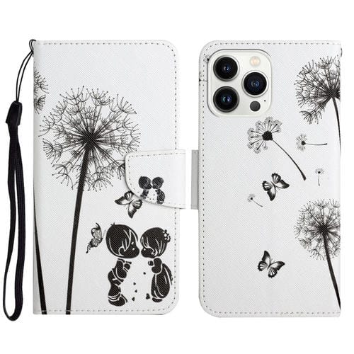 Funda de Cuero con Tapa para iPhone 16 Pro Dibujo 3D Dientes de León