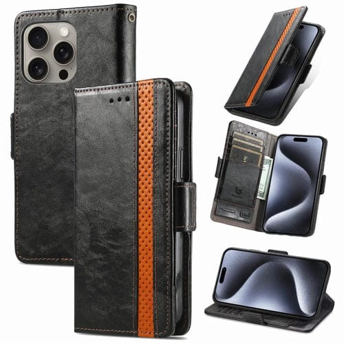 Funda para iPhone 16 Pro Cuero con Hebilla Magnética Doble Empalmada Neo (Marrón)