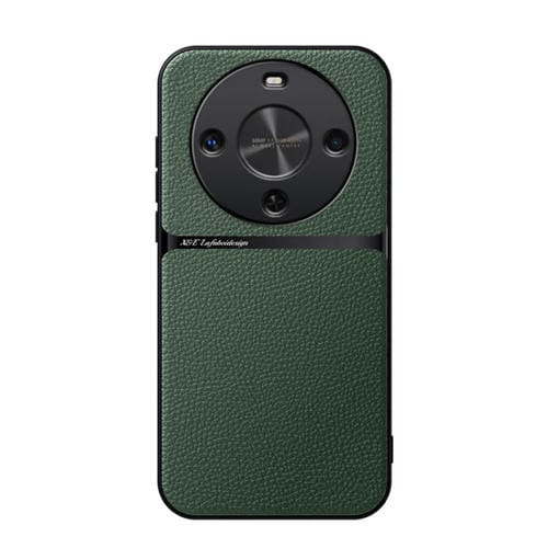 Funda para Teléfono Huawei Pura 70 Piel de Lichi Cobertura Total Magnética a Prueba de Golpes (Verde)