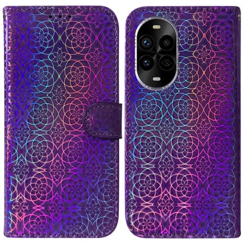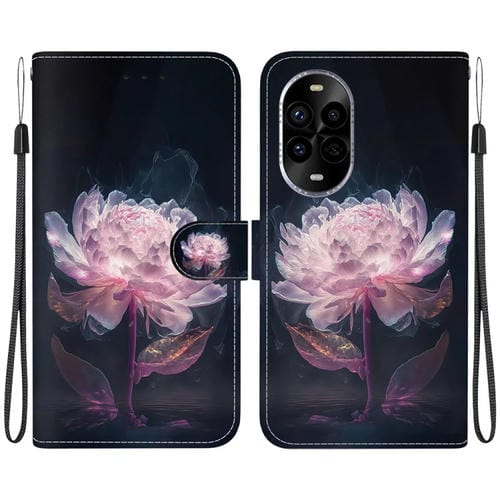 Funda de Cuero para Huawei Nova 13 Pro con Dibujo de Colores y Textura de Cristal (Peonía Morada)