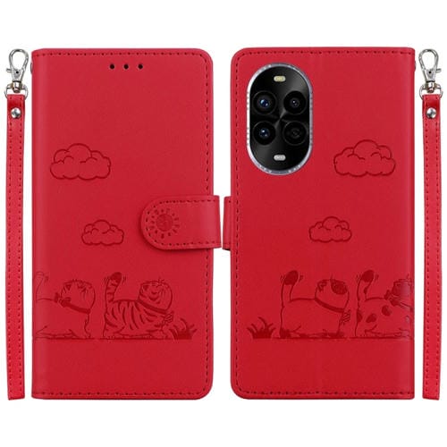 Funda de Cuero Rfid para Huawei Nova 13 Pro (Roja) con Diseño de Gatos
