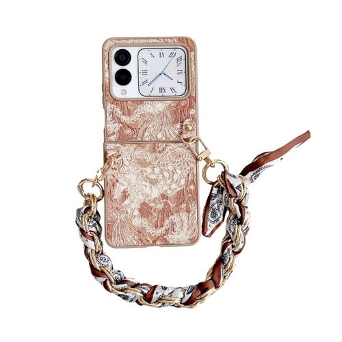 Funda para Teléfono Huawei Pocket 2 con Textura de Tejido y Correa (Marrón)