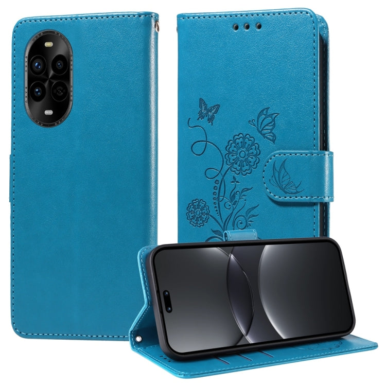 Funda de Cuero para Huawei Nova 13 Pro con Diseño de Mariposas y Flores en Relieve (Azul)