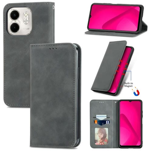 Funda de Cuero con Tapa Magnética para Teléfono Infinix Smart 9 (Gris)