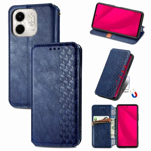 Funda de Cuero Magnética con Rejilla Cúbica para Teléfono Infinix Smart 9 (Azul)