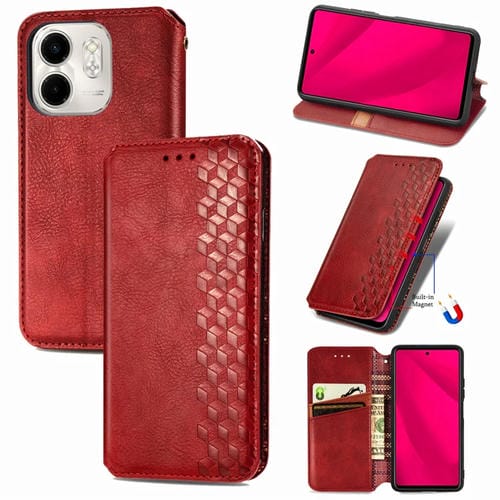 Funda de Cuero Magnética con Rejilla Cúbica Prensada para Infinix Smart 9 (Roja)