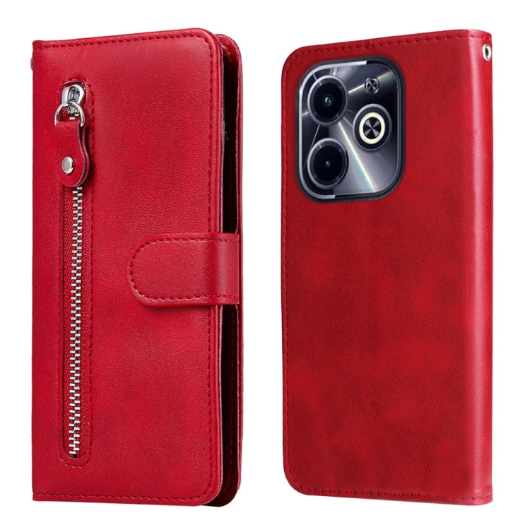 Funda de Piel Textura de Becerro con Cremallera para Infinix Hot 40I (Rojo)