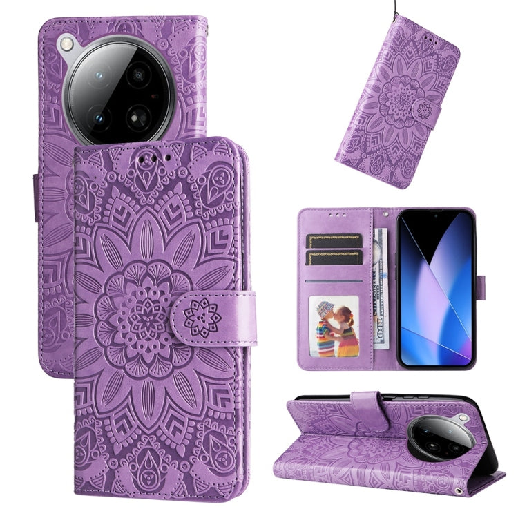 Funda de Piel con Estampado de Girasoles en Relieve para Infinix Zero 40 4G/5G (Morado)