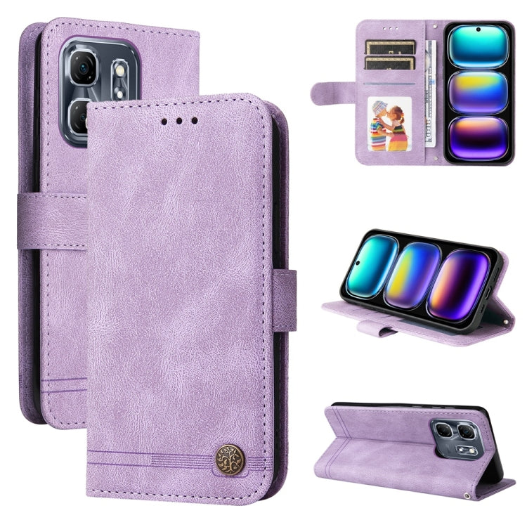 Funda de Cuero con Botones de Metal y Diseño Árbol de la Vida para Infinix Hot 50I/Smart 9 (Morado)