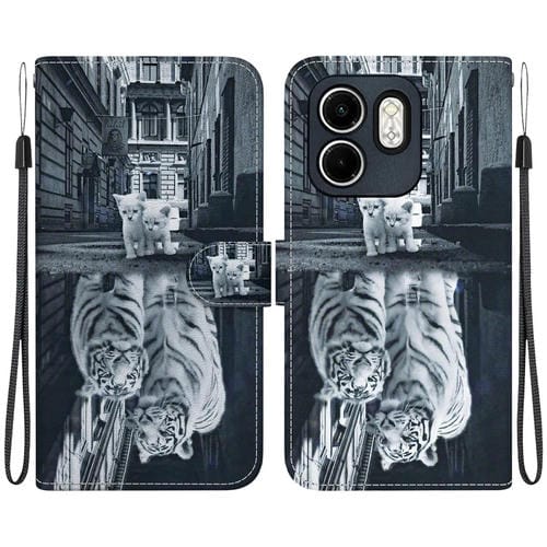 Funda de Cuero con Dibujo y Textura de Cristal para Infinix Hot 50I Smart 9 (Reflejo de Gato y Tigre)