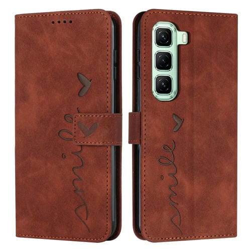 Funda de Cuero con Relieve de Corazón y Cordón Largo para Infinix Hot 50 Pro 4G (Marrón)