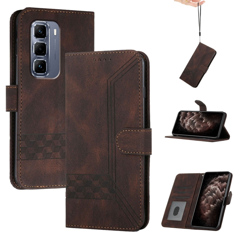 Funda de Cuero con Tapa Cúbica para Infinix Hot 50 Pro+ 4G (Marrón)