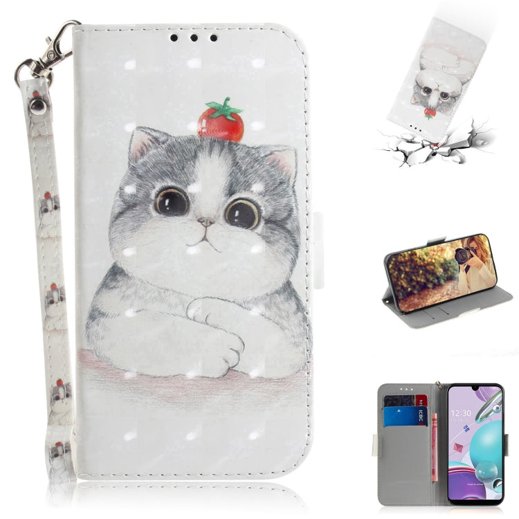 Funda de Cuero Abatible Horizontal para LG K31 con Dibujo 3D, Soporte, Ranuras, Billetera y Cordón
