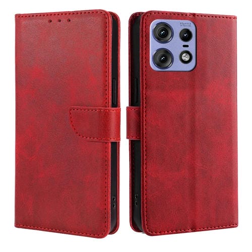 Funda de Cuero con Tapa y Hebilla Textura Piel de Becerro para Motorola Edge 50 Fusion 5G (Rojo)