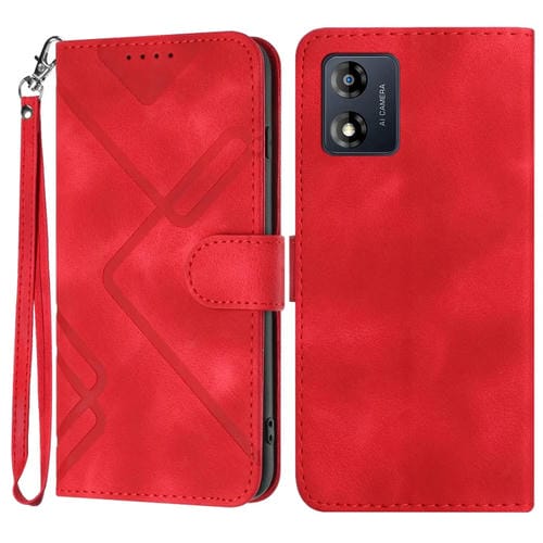 Funda de Cuero para Motorola Moto E13 con Textura Line Pattern Skin Feel (Rojo)